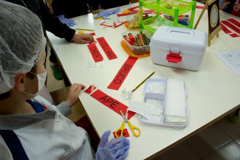 Le vocali sono al pronto soccorso in codice rosso! Urge un intervento chirurgico per poterle guarire! Allora iniziamo subito con l’operazione. Ad aprile 2015, quando frequentavano la classe seconda, i bambini e le bambine della classe hanno fatto più volte questa esperienza per comprendere il significato di uno dei segni più problematici della lingua Italiana. Ad oggi che siamo in quarta posso dire che nessuno ha avuto grosse difficoltà nell’apprenderlo.