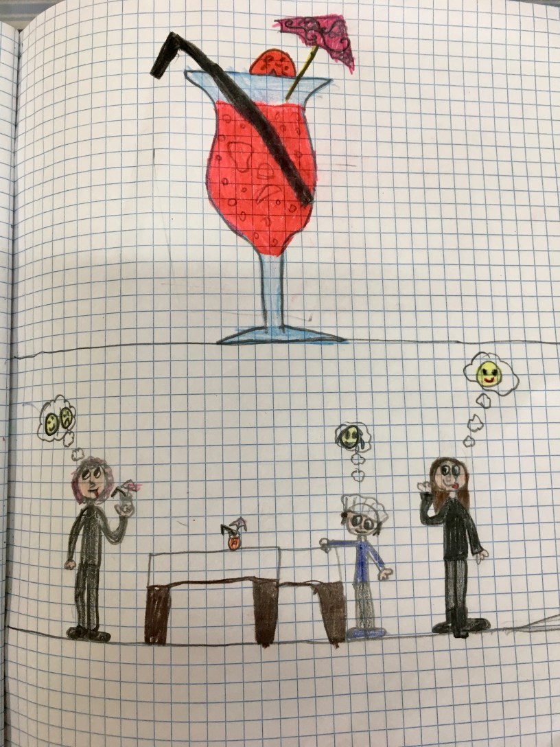 Il compito è questo: preparare una bevanda pre-merenda di 500 ml con almeno 3 bibite diverse e presentarla nel giusto modo per l’assaggio della giuria (le coraggiose maestre!)