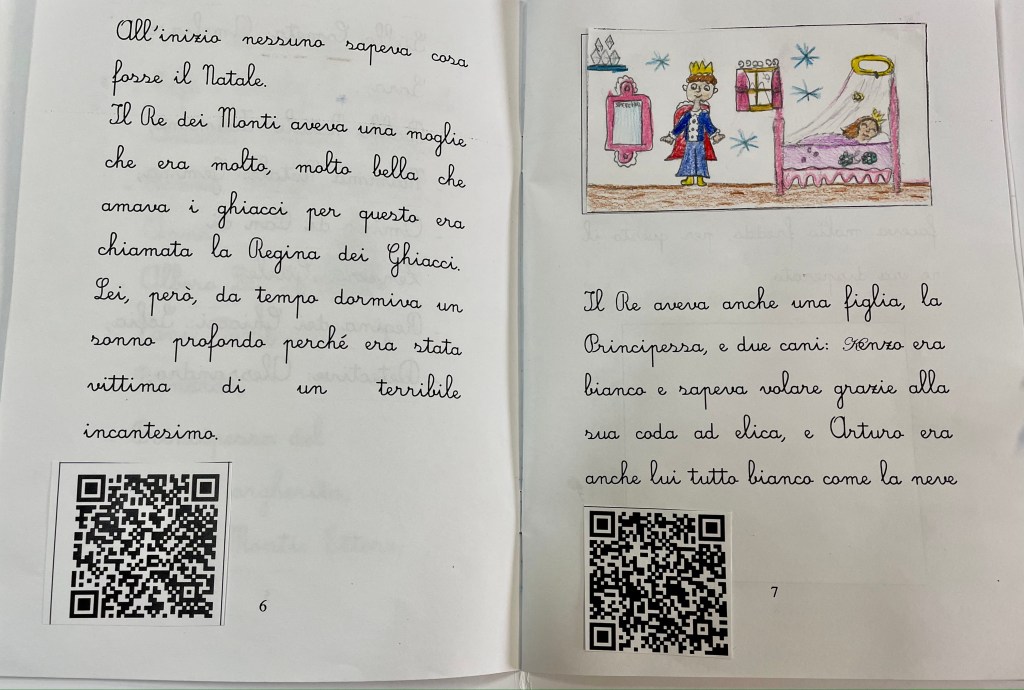 Il Natale offre sempre buoni spunti per sviluppare delle attività coinvolgenti ed appassionanti. In terza, il lavoro si è concentrato sulla creazione di una “Storia di Natale” di classe. Dopo aver invitato gli alunni a pensare ad un inizio, un incipit che potesse piacere a tutti, sono stati proposti i personaggi principali e secondari. Ognuno ha contribuito con idee e suggerimenti in ogni parte del racconto. Per quanto riguarda lo sviluppo della vicenda sono state considerate, anche in questo caso, tutte le idee proposte e poi riadattate per rendere tutti partecipi e autori della storia. Nel libro finale sono presenti gli audio delle letture dei bambini leggibili tramite codice QR. Le copertine di ogni libretto sono decorate a piacere secondo i temi natalizi.