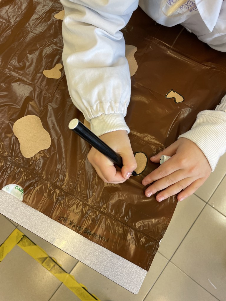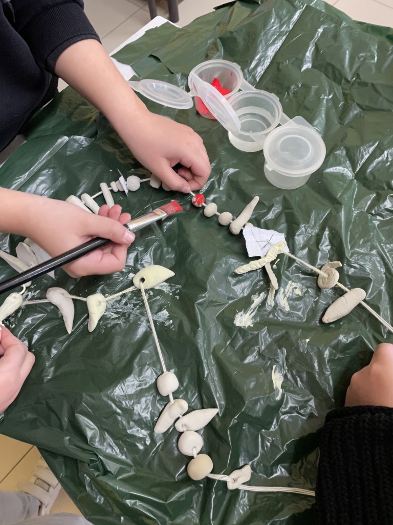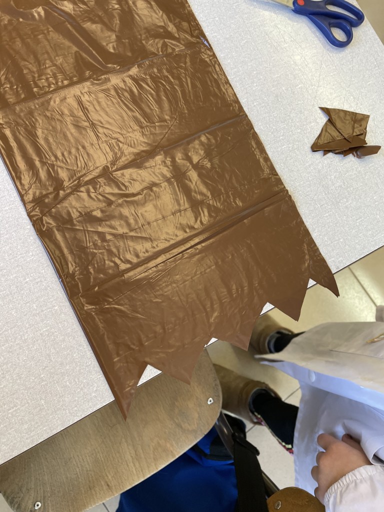 In classe terza, ci siamo travestiti da uomini e da donne dell’Età della Pietra. Con dei sacchi marroni e verdi di plastica abbiamo ricavato dei vestiti.Poi, con la creta ci siamo divertiti a creare dei “gioielli”, delle collane e degli accessori da indossare per l’Ultimo di Carnevale.