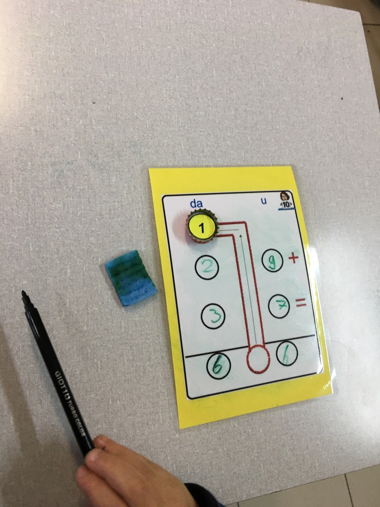 Nel corso degli anni ho creato io stessa dei materiali “attivi” per facilitare certi apprendimenti: RIPORTINO e PRESTITINO per il cambio nell’addizione e nella sottrazione.